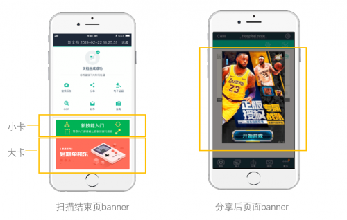 扫描结束的保存页面,用户会看到对应的广告展示,分为大卡和小卡两种位置尺寸。