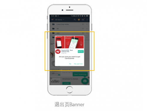 用户退出扫描后,用户会看到相应的广告展示,可根据筛选条件控制展示的频次及目标用户。