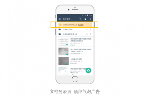 该广告位置位于扫描全能王App文档列表页顶部位置。