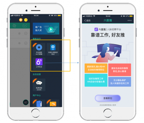 比如下图中点开工作机会,可以看到六度推投放的广告。