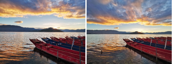 在4800万AI四摄的组合中,1600万超广角摄像头深得年轻人的喜爱,可以让照片拥有更广的视角范围,涵盖更丰富的画面。下面两张照片就是使用华为nova5 Pro在同一个地点拍摄的,从两张照片的对比中可以明显的看出,开启“超广角模式”之后的照片视野更广、画面更丰富,让照片更具纵深感和层次感。