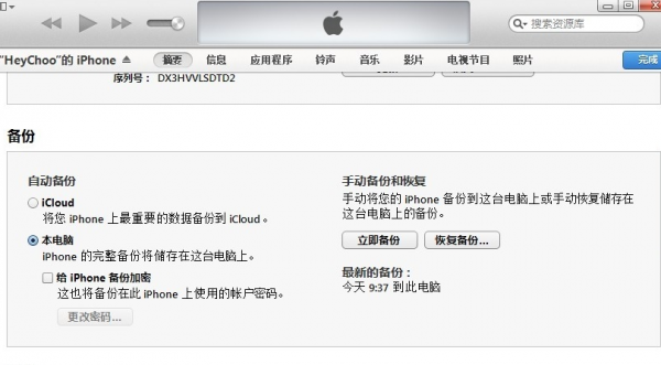 将苹果手机用数据线连接到电脑,安装、打开iTunes工具,我们看到最新显示的备份时间是今天,所以可以选择恢复备份,恢复期间不要中断手机,切记不能点数据合并,否则数据都会丢失。这个方法是有前置条件的,就是必须有过备份才可以用。