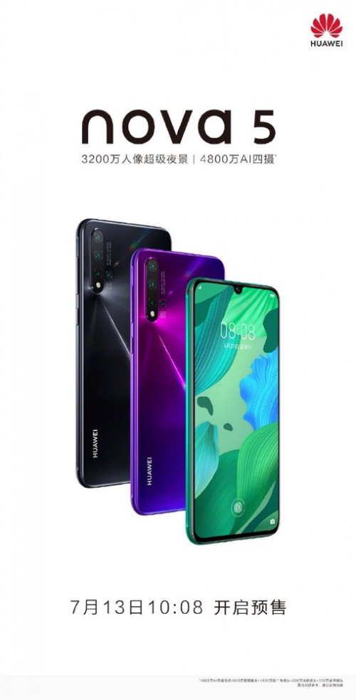 惊艳的自拍实力、多样化的高品质后置拍照和强大的性能加持,让华为nova5成为今夏学生党的上乘之选。目前,华为nova5已开启预售,并将于7月20日正式发售,是否撩动了你的心呢?赶紧行动起来吧!