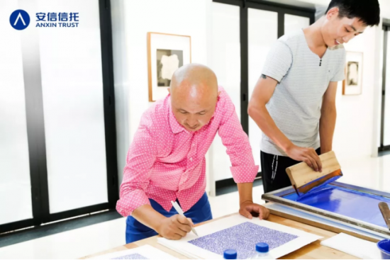 安信信托高净值客户还收到一份特别的惊喜:在陆新建的指导下亲自动手制作一幅属于自己的限量版画。这幅版画选自陆新建《城市基因》系列,以俯视角呈现出上海虹口的城市风貌,作品选色采用了安信信托品牌焕新的“信任之蓝”,明亮、独特的蓝色让大家爱不释手。陆新建为每幅画作签名留念,成为这场艺术之旅的珍贵记忆。