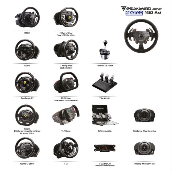 图马思特Sparco®R383拉力赛级加装方向盘盘面兼容 Thrustmaster(图马思特)生态系统中的以下产品:T300RS Servo Base、T500 RS、T300RS、T300 Ferrari GTE、T300 Ferrari Integral Racing Wheel Alcantara Edition、T300 RS GT Edition、TX Servo Base、TX Racing Wheel Ferrari 458 Italia Edition、TX Racing Wheel Leather Edition、TS-PC RACER、TS-XW Racer Sparco P310 Competition Mod 和 T-GT。
