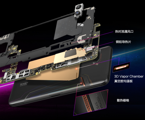 习惯烧脑、烧机的玩家寻求的是一种酣畅淋漓的游戏快感,在如此发烧的顶配之下,ROG游戏手机2依旧保持酷冷状态,其采用3D Vapor Chamber 真空腔均温板+铜铝导热片的全新矩阵式液冷散热架构,内置真正散热池液冷,整体扎实的用料使得ROG游戏手机2的温度保持在使人体舒适的温度,从而带来更好的游戏体验。