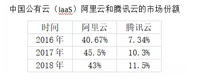 国内的格局,和国际上很像。同样是电商巨头旗下的云服务商,阿里云在国内拥有先发优势。IDC中国公有云市场数据报告,2015年统计至今,多年来年来阿里云一直位居中国市场第一。在2018年上半年,阿里云中国公有云市场份额达到43%,依然保持第一的地位。第二大服务商是腾讯云,2018年上半年的市场份额达到11.2%。