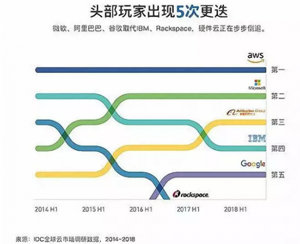 中国云计算被一些戴有色眼镜的西方媒体称为“世界秩序的搅局者”。抛开这个论断的荒谬性不谈,以这种思路来看2009年9月正式推出的阿里云,它也确实搅动了整个世界的云服务市场。2015年夺取了RackSpace的第四名,2018年上半年市场份额超过IBM,跻身世界前三。