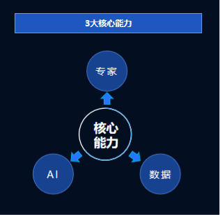 e成科技拥有三大核心能力——专家、AI和数据。三者相辅相成,专家指导AI,AI协助专家,数据喂养AI。“专家+AI+数据”三驾马车 共同构成了e成科技业务与产品发展的驱动力。