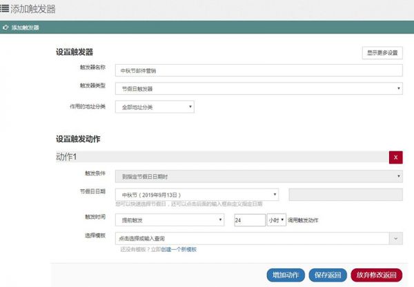 像U-Mail邮件营销平台的触发器功能,可以设置节日触发或者生日触发,提前设置好群发邮件内容,到节日或生日时间就会自动群发邮件。