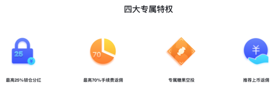 为了充分考虑用户的短期和长期收益,Hubi合伙人不仅享有最高25%的锁仓分红,而且还享有最高70%手续费返佣、专属糖果空投、推荐上币返佣等特权。