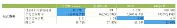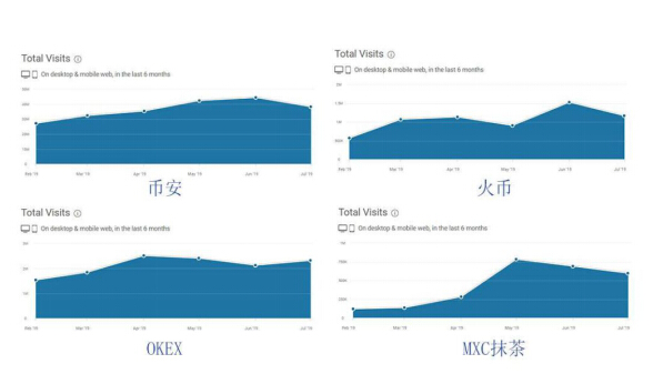 总访问量能最直观的展现交易所的人气,用户数量。可以看到在这个方面币安交易所是遥遥领先的,其他交易所目前都只能望其项背。