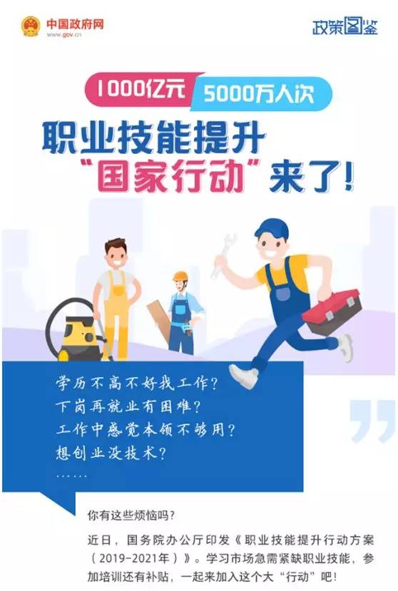 2019年国务院办公厅印发《职业技能提升行动方案(2019-2021)》,再次强调职业技能培训的重要作用。把职业技能培训作为保持就业稳定、缓解结构性就业矛盾的关键举措,作为经济转型升级和高质量发展的重要支撑。