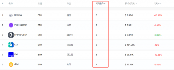 DAPP TOTAL数据显示,近期出现的DeFi生态应用项目出现的使用人数过少的情况,不少项目的DApp7天使用人数几乎为零。之所以会出现这些问题,其中原因很多,但是产品可用度底,操作不友好,不能不说是这些项目失败的原因之一。