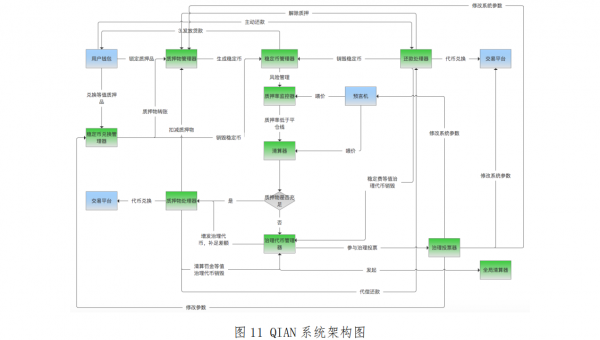 但由于这些数字资产本身价格波动较大,因此一般要通过超额抵押以及强制清算等风控机制保证每个价值 1 美元稳定币,背后至少存在价值 1 美元的抵押物,可以在清算的过程中获得。相较于同样有抵押物的法币储备模式,Qian 主要优势在于体现了区块链的去中心化思想,质押物锁定在智能合约里,公开透明,无法被挪用或冻结,没有任何人或者机构可以直接控制稳定币的发行。