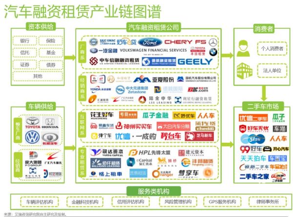 经销商方面,广汇汽车成立了广汇租赁。金融公司方面,中国银行推出了“易分享”,开展汽车融资租赁试点,建设银行、浦发银行、上海银行等与大搜车建立合作。乐信集团推出了汽车金融服务产品“乐买车”,进军汽车金融领域,趣店也曾推出专门的汽车以租代购品牌“大白汽车”,并与上汽通用达成合作。