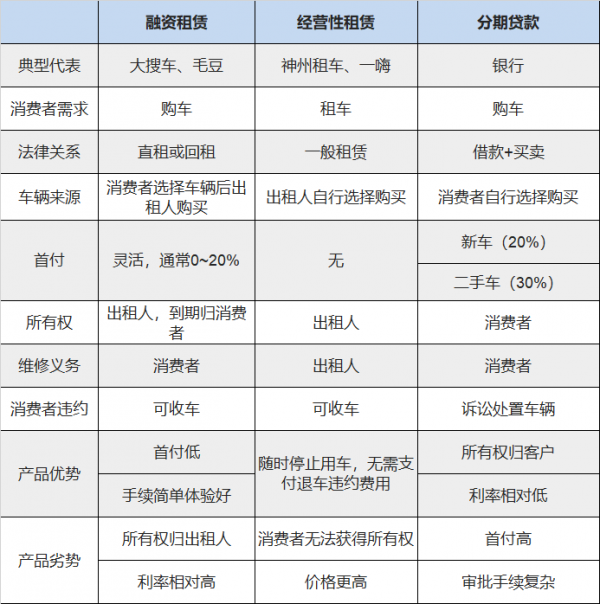 融资租赁、经营性租赁、分期贷款三者之间的区别