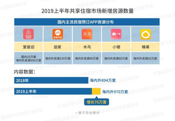 三、2019上半年共享住宿市场新增房源数量