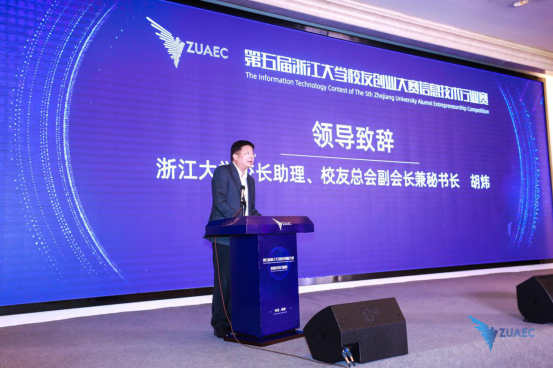 活动期间,浙江大学校长助理、校友总会副会长兼秘书长胡炜指出学校的进步离不开广大校友的共同努力,大赛在进一步汇聚校友、学校和社会的创新创业资源,打造互联互通、共生共享的学校-校友发展共同体等方面发挥了重要作用。