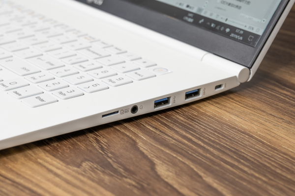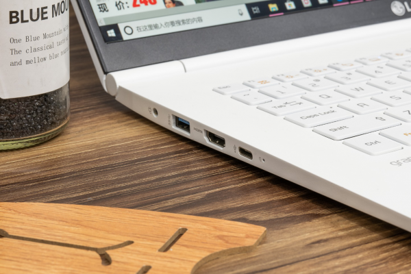 与其他轻薄本阉割接口的方式不同,LG gram17依旧给我们保留了三个USB 3.1、一个HDMI、一个SD卡槽以及一个满速的雷电3接口。出门在外也不会手忙脚乱。尤其是满速雷电3的加入,满足视频输出、数据传输、电量补给等等,一个接口全包容。