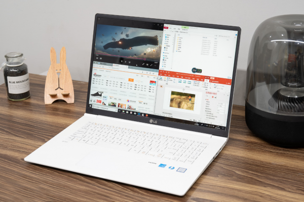 但笔者认为LG gram17最大的突破不在CPU而在屏幕。众所周知,这块17英寸的屏幕,该规格屏幕尺寸在笔记本上面就相当罕见,更别说轻薄本了。而这块LG原厂的17英寸屏幕采用了非常适合办公或是修图的16:10比例,配合windows操作系统,我们可以实现四分窗口的同时还确保每个窗口能显示更多的内容,做到多管齐下,实现效率上的提升。