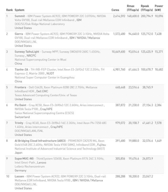 五、TOP500榜单出炉,前10名岿然不动,中国超级计算机性能有提升!