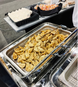 随着亚洲军团数量的提升,主办方首次开设了亚洲展位,配备了亚洲餐——锅贴、春卷这类小食,对于异地参展的中国人来说,十分亲切。