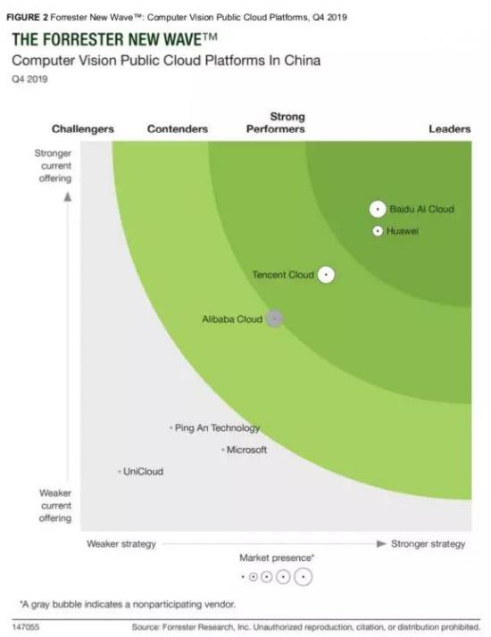 此前,IDC还在8月发布了《IDC Market Scape:中国机器学习开发平台2019厂商评估》(以下简称报告二)、11月初发布了《中国公有云服务市场2019上半年跟踪》(以下简称报告三),Forrester则在11月中旬发布了中国计算机视觉的最新报告(以下简称报告四)。