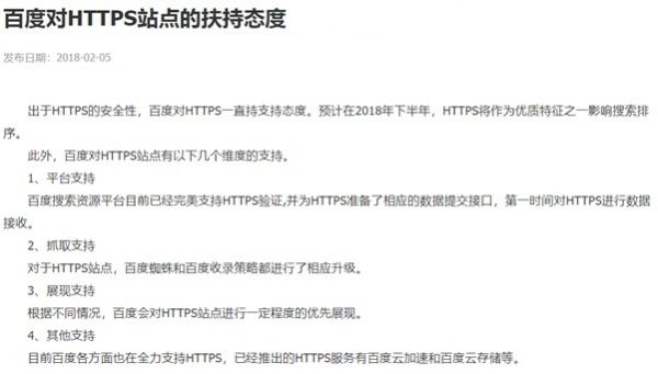 百度搜索引擎对HTTPS站点的扶持态度