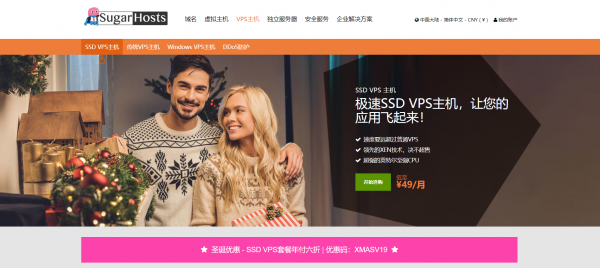 全场最低价,首推入手,洛杉矶SSD VPS 圣诞特惠价¥28.75/月(原价49),年付即省230元,这次打折力度还是SugarHosts比较狠,其他主机商不敢这么玩。