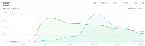 除集五福之外,经历了去年春晚考验的百度,其“好运中国年”的主题深入大众。从15-16日的百度搜索指数可以看出,“好运中国年”开启后迎来了搜索高峰,至16日上午与支付宝集五福活动的数据基本持平。