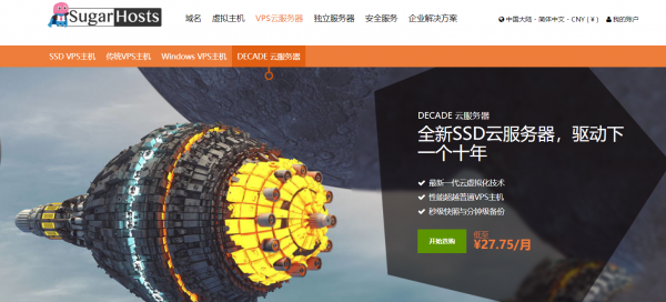 SugarHosts在国内是比较知名的海外主机商之一,前段时间他们也发布了新的产品 — DECADE云服务器,位于香港数据中心,速度和稳定性都是极佳的。目前正值新年特惠和新品上架,双重优惠,特别适合有需求香港云服务器的朋友入手。