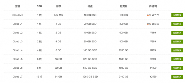 目前推荐入手的则是上图的两个计划Cloud M1和Cloud L1,三年付可达最大的优惠力度,Cloud M1 三年付最低价格仅¥27/月,在众多主机商中这个价格也超级低了。
