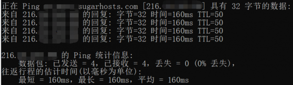 SugarHosts美国数据线路,优化很好,延迟更低,不丢包。