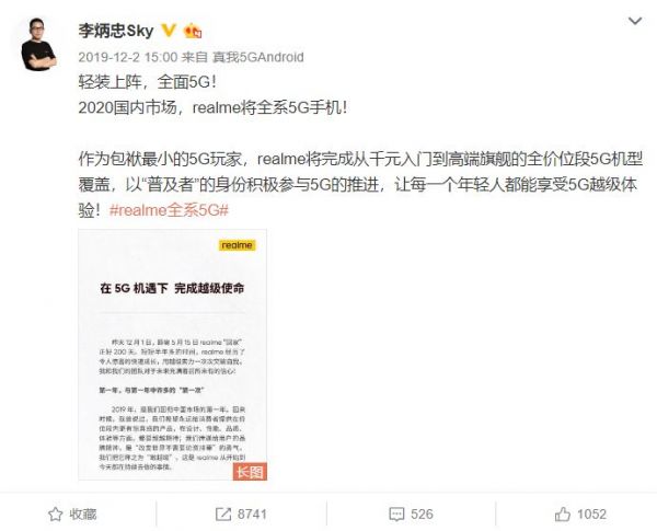 首先,在5G手机方面,realme的目标是争做全球5G普及者。