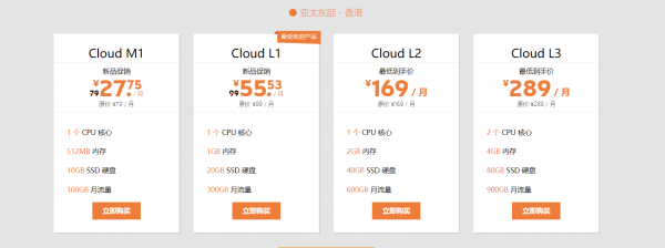 Cloud L1属于标准级配置,年付最高有一个五五折的优惠,性价比很高。