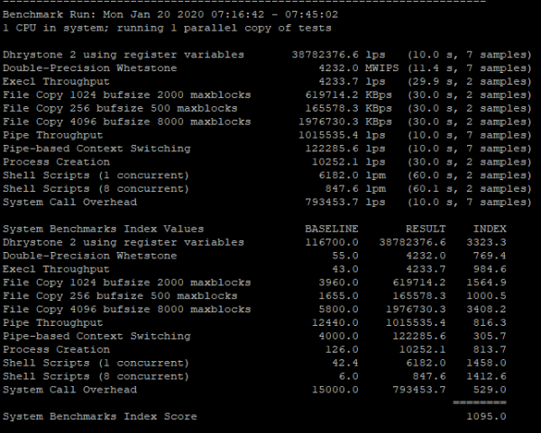 Unixbench跑分测试: