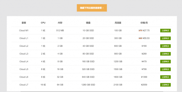 Cloud M1作为热销方案,年付最高有一个三五折的优惠,入门必备。