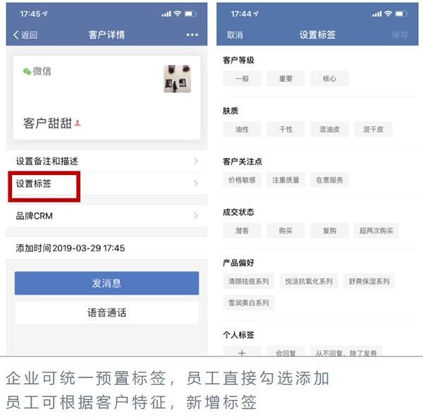 在企业微信中,管理员和员工可以给客户打标签,提高沟通效率,方便后续有针对性地提供个性化服务。
