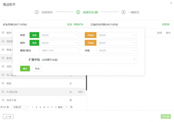 可根据标签、分组等属性对符合筛选条件的目标人群自动推送广告等信息,信息可发送文字、图片、公众号、H5链接等多种形式。也可以批量对好友推送关怀信息,增加客户黏性,获得客户好感,建立与客户之间的信任度。