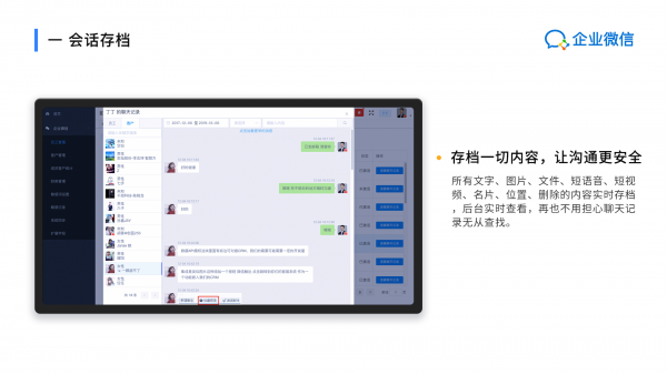 不论是基础的企业微信还是个人号,都有一个痛点,就是无法监控成员与客户的聊天,就算是使用了一些第三方工具,也只能导出文字的聊天内容,图片链接等其他的内容都无法展示,这样就非常不利于企业管理监控,消息存档功能可以解决大大解决这个痛点。