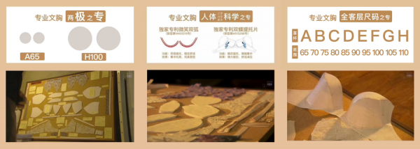 之后,在上述20-50个测量变量间排列组合出要开发的数据组,进入多达50-100道裁片、工序的制作阶段,其中,车缝工艺、车缝设备、车缝角度等更是影响贴肤的舒适度,影响提托的力度,影响胸部的弧度,在有力托起和健康无压、胸态美观之间只有那么不多的几个选项可以兼顾完成……