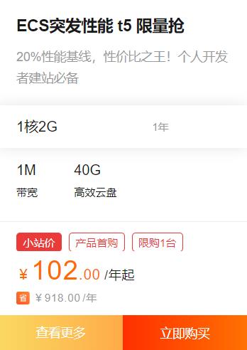 1核CPU,2GB内存,40G高效云盘,1M带宽的云服务器,小站价只要102元/年。看到这,朋友们又会有疑问了,说小编你数学是体育老师教的吧,我拿出计算器算了下怎么也得不错0.2元每天呀!别急嘛!请往上看,前面有个20元的代金券领取了是可以用的哟!抵扣后是82元/年,折算下来差不多就是0.2元/天往右偏一丢丢,对吧!