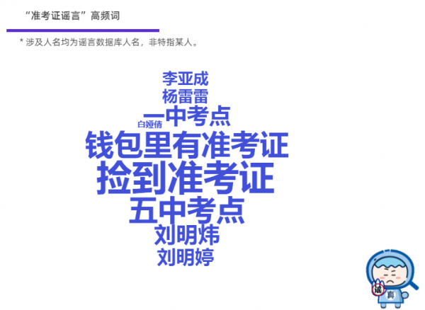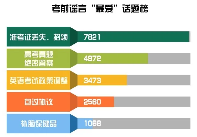 丢准考证事件每年都有发生,一方面让信息真假难辨,迷惑性强,不少网民正出于善于转发,给了谣言可乘之机;另一方面,其较高的出现频率、旧谣新传等特点,也为识谣辨谣提供了契机。中国互联网联合辟谣平台对近3年此类谣言进行梳理,归纳出此类谣言高频词,看到它们,就别转了!