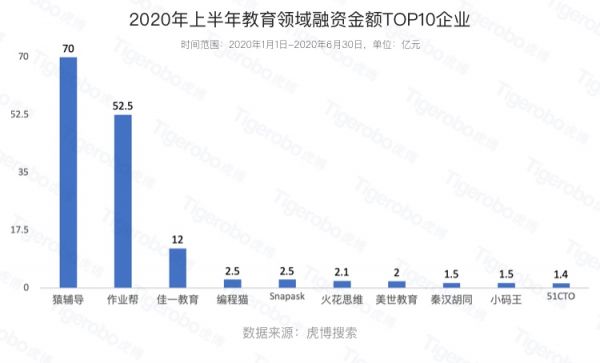 在线教育成为教育领域的主旋律,融资金额前十的公司中,在线教育公司占到了70%。