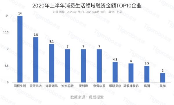 在消费生活领域,同程生活14亿元C轮融资是该领域最大的一笔融资,泰笛科技对天天洗衣的并购以及澳优乳品对海普凯诺的战略投资分列二三位。前十公司涵盖行业较多,包括O2O、零售、日化等。