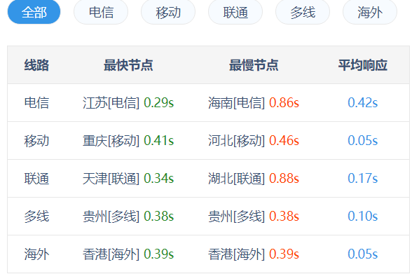 中国三网直连,平均响应0.158s,网络优化很棒。
