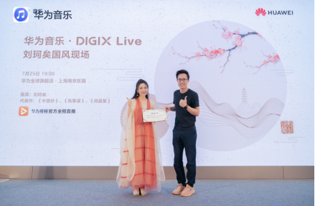 为了让喜爱国风音乐的朋友获得更多更好的音乐体验,华为音乐·DIGIX Live打造国风文化潮流并大力推广国风音乐。活动现场,华为全球旗舰店·上海南京东路店店长感谢刘珂矣做客“城市客厅”并为刘珂矣颁发了“华为音乐•DIGIX Live 音乐分享人”证书。未来,华为音乐将携手更多优秀原创音乐人,为用户带来更具特色、富有文化内涵的音乐享受。