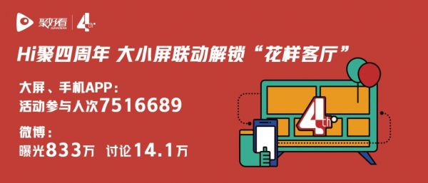 根据不完全数据,截至7月29日,聚好看大屏端、手机APP“海信聚好看”四周年活动参与人次达7516689,微博话题曝光达到了833万、评论14.1万。以活动打通大小屏生态,聚好看回馈家庭用户的同时,也构筑了OTT流量的绿色、健康生态。