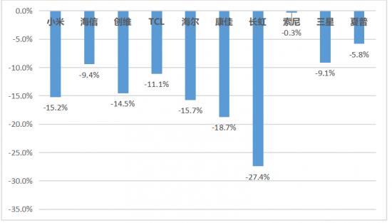 品牌方面,更是除了索尼还在基本保持一贯的价格策略外,其他主流品牌的价格下调基本都接近10%,长虹更是达到27.4%,严峻形势一目了然。当然,电视行业进入“价格战”也不再新鲜,据统计,在电视行业快速发展的30年中,大大小小的“价格战”发生不下20次。